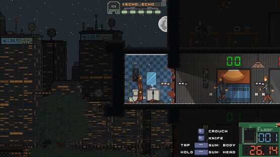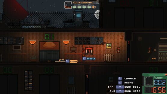 1982 style gameplay in a 1982 alternate timeline. Speedrunning 2D hand-drawn pixel art platformer where you need to destroy the satellite on each level by shooting, headshooting or knifing the enemies and collecting their elevator access codes.