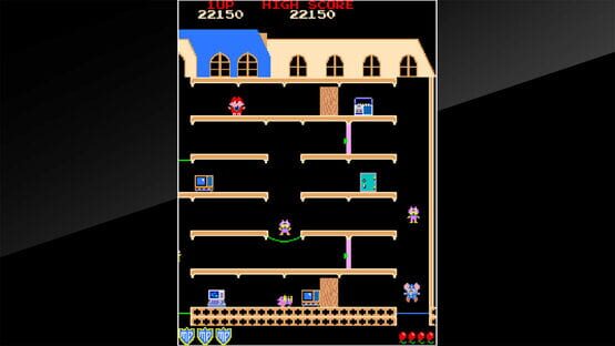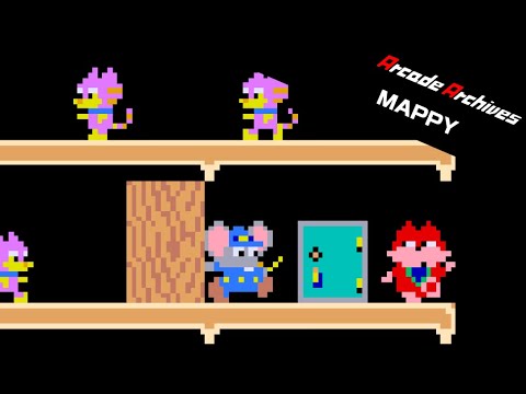 Mappy is an action game released by Namco in 1983. Players control Mappy, an enthusiastic, committed police officer on a mission to reclaim stolen goods from a mansion. Avoid getting caught by Nyamco and Mewkies while you take back the goods!