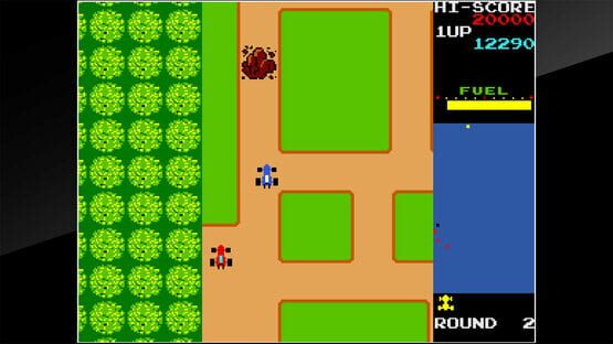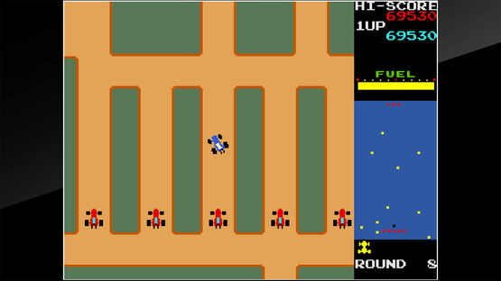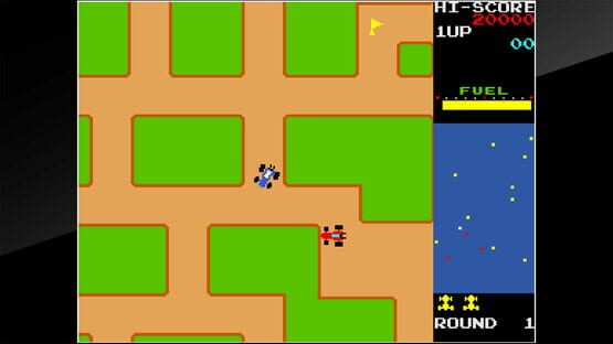 Rally-X is an action game released by Namco in 1980. Players control a car and dodge pursuing red cars while collecting flags. Stall the red cars using a smokescreen when they get too close.