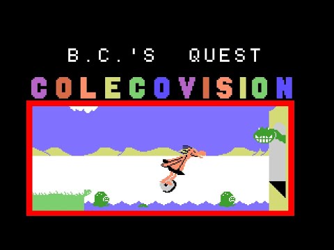 Cute Chick is in trouble! She is being held captive by the dinosaur, and it is up to Thor to ride his trusty wheel to the rescue. There are many obstacles in the way which Thor will need to jump and duck, including rocks, trees, rivers, lava pits, cliffs, and of course Fat Broad. When you duck, the character bounces up and down, so don't duck too soon. BC's Quest For Tires is a side scrolling action game resembling Moon Patrol in some ways, featuring characters from the comic strip BC.
