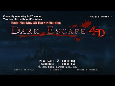 Dark Escape 4D is a fixed-gun arcade game for 2-players with a closed booth setup that has multiple built-in elements connected to the game. It has heart rate sensors in the gun handles, built-in air blowers in the front and back of the cabinet, rumble seats, surround sound speakers and a 3D visuals mode for use with the provided glasses.