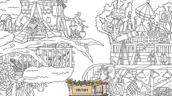 Explore the amazing magical tree of life, finding cute cats and paint black - white locations with colored paints.