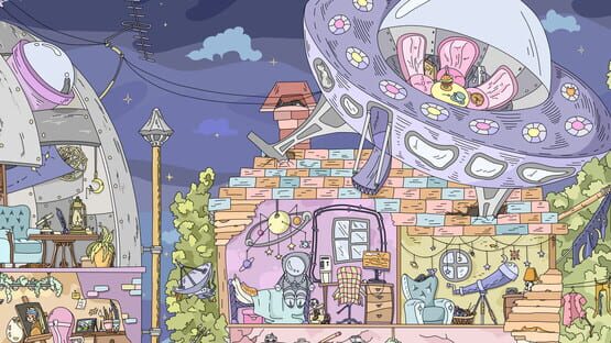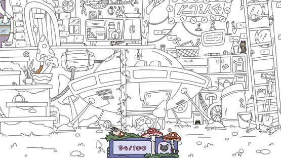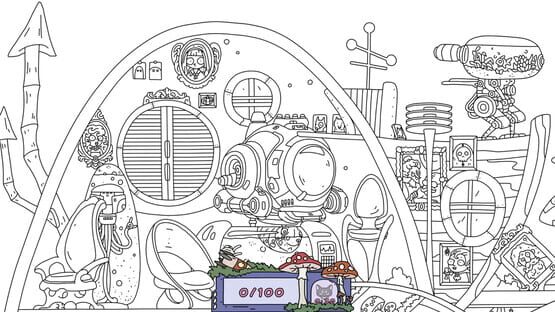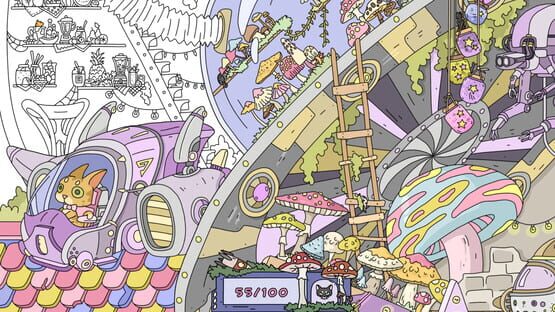 Explore a mysterious alien world, find cute cats, and paint black-and-white locations with bright cosmic colors.