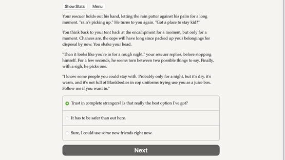 Topple the vampires from the streets below! Will you unite the homeless, the gangs, and the secret hunter societies to defy vampiric rule? An interactive novel set in the World of Darkness extended universe.