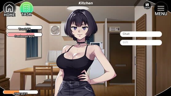 You dashed into the first apartment you could find, trying to escape the sudden downpour—and here's the result: a slamming door, an unfamiliar interior, and… her.