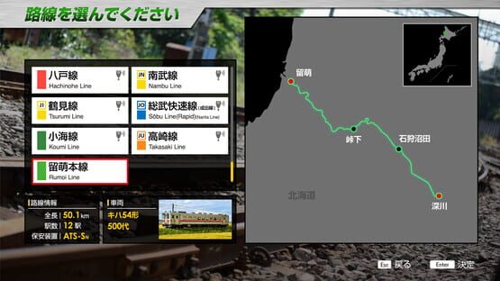 The Rumoi Line is a 14.4 km long JR Hokkaido line connecting Fukagawa Station in Fukagawa City, Hokkaido to Ishikari-Numata Station in Numata Town, Uryu County, Hokkaido. This DLC includes the up and down lines between Fukagawa and Rumoi (total length 50.1 km), including the discontinued section.