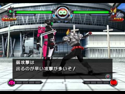 The game plays much like other 3D fighters such as Tekken, with the major addition being the so-called "Form Change" system that allows each Rider to transform during battle, and even in the middle of a combo. The main story mode is "Decade Mode", where the player must complete various missions with different characters to proceed through the story. There are also standard Versus, Survival, and Training modes. The game also includes a simple control option for younger players.