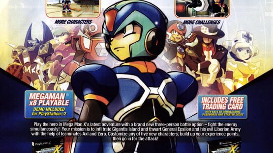 After the first team of Maverick Hunters was annihilated or otherwise subdued by the Rebellion Army, Colonel Redips sent in a special team composed of X, Zero, and Shadow. If they failed their mission - arrest Epsilon and quell the Reploid insurrection - the Federation would have no choice but to declare all-out war on Giga City and the Rebellion Army.