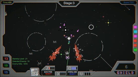 A top-down shooter roguelite in space. Defeat enemies to collect six 'Color Stones' and use them as weapons. Use leftovers to buy upgrades from cat merchants and unleash skills to escape crises. Even in death, permanently upgrade your ship to challenge powerful bosses and save the Earth.