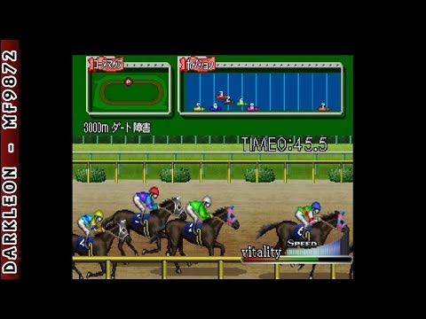 Simple 1500 Series Vol. 25 - The Keiba is a horse racing game in which the player can compete in differents tracks. The gameplay is really arcade since to gain speed the player has to press the X Button lots of time, but it also has to be careful not to tire so much his horse or the horse stamina will be over, and reduce to speed at the end of the race, so is better to be in the group and accelerate in the last part of the race to have some chances of win.