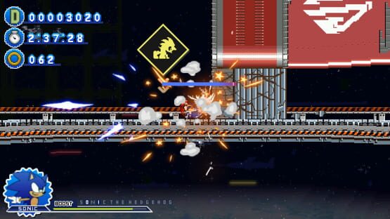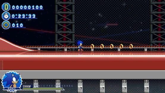 This is a 2D Sonic fangame based on the Boost formula, using the Modern Sonic Worlds engine, created in Click Team Fusion . A platformer with exciting additions: quick-time events and animated in-level cinematics to immerse you in this adventure.