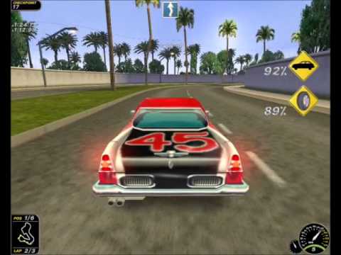 High stakes gambling & custom car racing through Satan’s playground! Race through crowded cities, snow-covered mountains, and active volcanoes. Take on UFOs, rock slides, fire-breathing dinosaurs, and a giant fist-smashing ape! Challenge 17 diabolical drivers through championships, vendettas, and high-stakes duels. Tons of alternative routes – can you find them all?