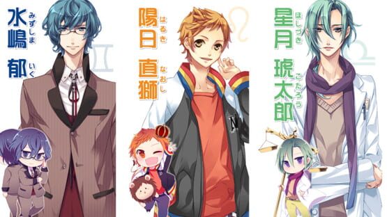 Starry Sky Autumn features Kotarou Hoshizuki (Libra), Naoshi Haruki (Leo) and Iku Mizushima (Gemini).