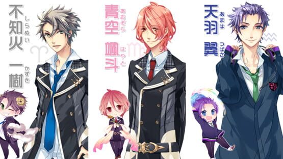 Starry Sky Winter features Kazuki Shiranui (Aries), Hayato Aozora (Virgo) and Tsubasa Amaha (Aquarius).