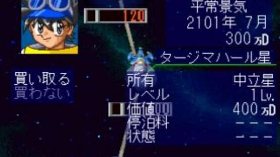 Bakuretsu Akindo Uchuu Goushouden is a sugoroku board game (Japanese backgammon) that takes its players to the universe. Gameplay offers a high degree of freedom. Player can choose to make money slowly by taking up ordinary jobs, or take a risk and make a fortune at one stroke.