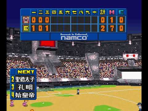 The first in a series of cartoon-style graphics baseball video games by Namco for PlayStation.