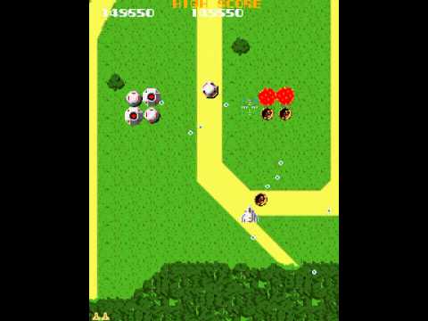 The game begins with Solvalou fighters flying over the Xevious enemy territory. You are controlling Solvalou with its anti-aircraft missiles and surface bombs. Your goal is to destroy the enemy and proceed on your mission.